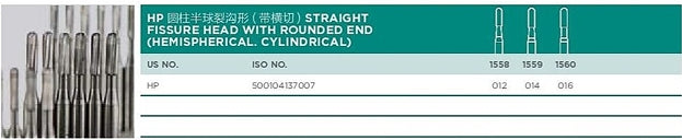 Wave Dental Burs feature HP Hemispherical Cylindrical Heads (Straight Fissure Head) with rounded head and are available in 3 precise sizes, providing versatility for various dental applications.