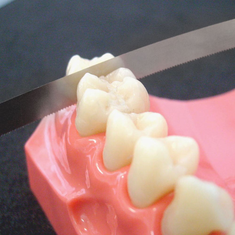 The Microcut Manual is a steel hand saw with a length of 150mm and a thickness of 0.05 mm, which can be cut to the desired size.