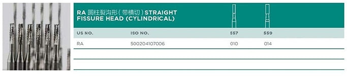 Wave Dental Burs feature RA Hemispherical Cylindrical Heads (Straight Fissure Head) for low speed contra angle handpiece and are available in 2 precise size, providing versatility for various dental applications.