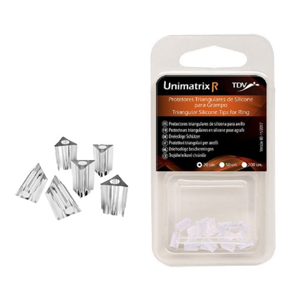 The Unimatrix R system is designed to optimize Class II restorations. Consisting of preformed matrices, reinforced rings and triangular silicone tips, it allows for much easier reconstruction of the contact points. The rings are reinforced for stability and strength.